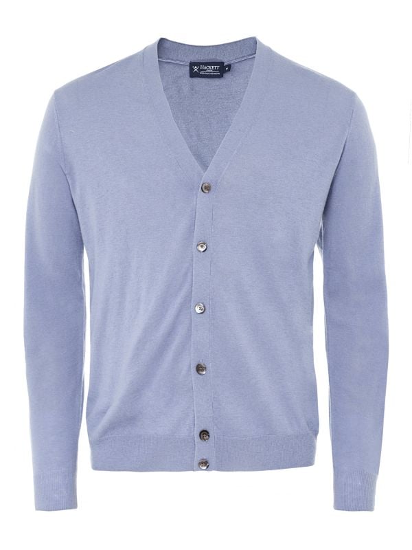 Take your seasonal knitwear to luxurious heights with the Hackett button-through cardigan. Lovingly crafted in a wool, cashmere and silk blend, the cardigan offers a lightweight and sumptuously soft handle that makes it an ideal layering piece. Featuring a traditional v-neckline and ribbed trims, whilst the smoked pearl buttons add further opulence.