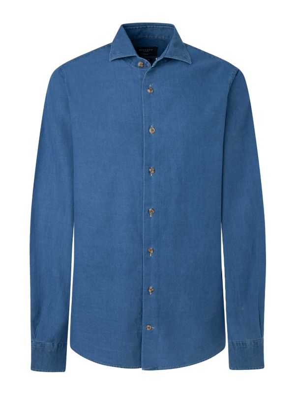 Refine your off-duty attire with the Hackett denim shirt. Tailored to a classic fit, the shirt has been laundered in pure cotton denim offering a light handle and luxurious soft feel. Featuring a Kent collar, French placket and adjustable cuffs, whilst the tortoiseshell buttons make for a premium finish.