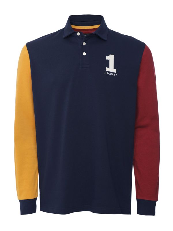 Lend your off-duty attire a sporty edge with the Hackett colour-block rugby shirt. Crafted in pure cotton, the polo shirt offers a super soft handle and essential comfort. Featuring a classic collar with button placket and long sleeves, whilst the embroidered number adds a heritage-inspired finish.