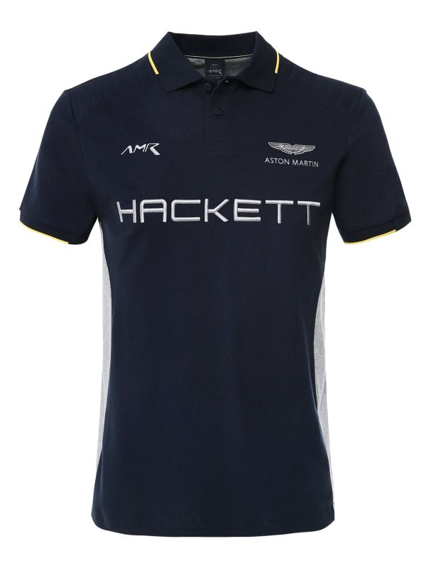 The Hackett contrast panel polo shirt draws inspiration from the dynamic body of a racing car. Taken from the label's collaboration with Aston Martin Racing, the polo is engineered in a stretch cotton pique and cut to a classic fit ensuring day-long comfort. Featuring a contrast collar and cuffs, button placket and contrast tipped trims, whilst the branded front makes for bold designer impact.