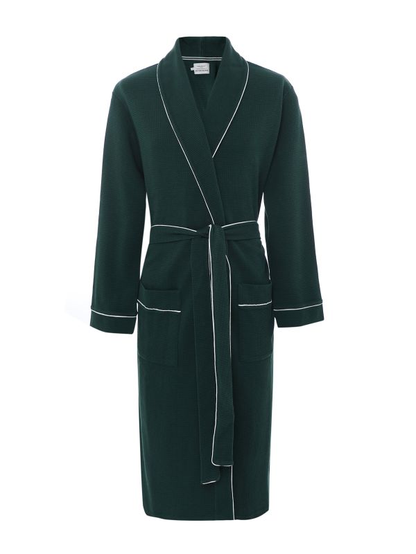 Wrap yourself in refined comfort with the Hackett waffle robe, crafted from soft, breathable cotton in a classic waffle weave. Designed with a sophisticated shawl collar and finished with contrast trims, it strikes the perfect balance between relaxed loungewear and elegant detail.