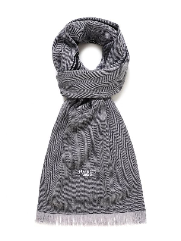 Lend your winter accessories timeless pattern with the Hackett herringbone scarf. Lovingly knitted in a cotton and wool blend, the scarf promises exceptional comfort and essential warmth. Featuring a stylish tonal herringbone pattern, striped edging and tasselled ends, whilst the label's logo is proudly embroidered for an authentic finish.