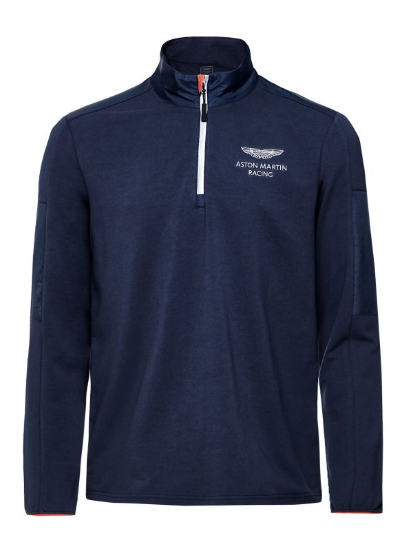 Taken from the esteemed Aston Martin Racing collection, the Hackett half-zip sweatshirt exudes sports infused character. Engineered in a cotton stretch fabric, the navy sweatshirt offers a wonderfully soft handle and ensures day-long comfort. Featuring a half-zip fastening with stand collar, in-seam zippered pockets and AMR branded chest, whilst the contrast technical fabric panelling adds dynamic detail.