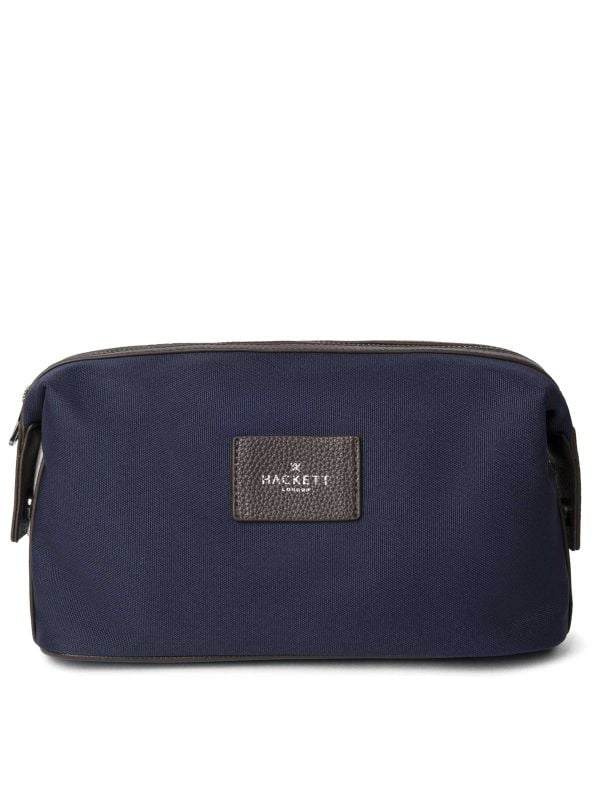 The Hackett Hemsby Canvas Wash Bag is a compact travel companion with a neat, structured silhouette. A top zip secures grooming essentials while a branded interior pocket helps keep smaller items organised. The bag features contrasting trims and a signature front patch for subtle branding. Practical and easy to pack, it suits short trips or daily use, offering protected storage and simple functionality without unnecessary detailing.