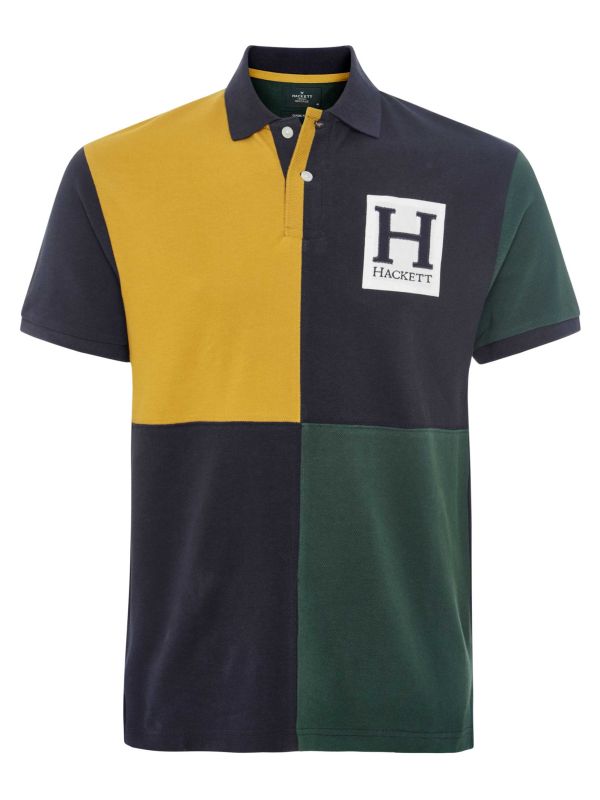 The Hackett Heritage colour block polo shirt is crafted from premium cotton pique, giving it a breathable and refined texture. This sophisticated Hackett polo features a two-button placket, offering a streamlined, polished look, while a bold H patch at the chest adds a signature touch.