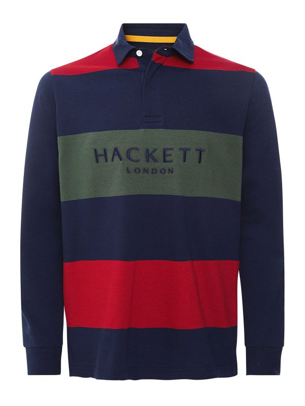 Lend your off-duty attire a sporty edge with the Hackett striped rugby shirt. Crafted in pure cotton, the polo shirt offers a super soft handle and essential comfort. Featuring a colour-block striped design with concealed button placket and long sleeves, whilst the embroidered logo to the chest adds a signature finish.