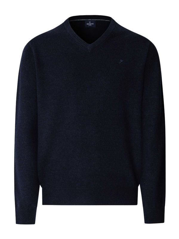 The Hackett Lambswool V-Neck Jumper is knitted in 100% lambswool for lightweight warmth. This jumper features a classic V-neckline, long sleeves and ribbed cuffs and hem, with a tonal embroidered logo at the chest. Its clean, plain knit lends itself to smart layering over shirts or under jackets, while a regular silhouette keeps the fit comfortable and neat. Finished with neat ribbed trims, it pairs equally well with tailored trousers or chinos. Ideal for cooler months, it provides breathable warmth and layers with ease.