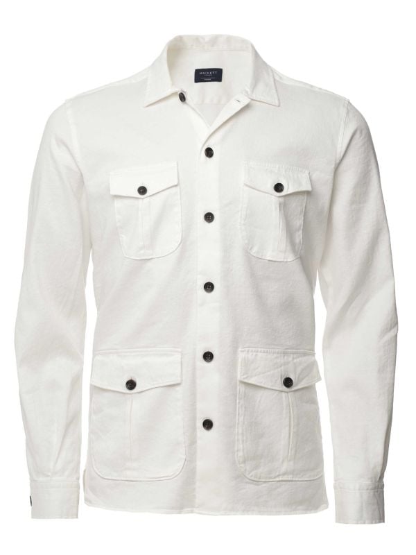 The Hackett linen overshirt draws inspiration from classic workwear. Engineered in a linen and cotton denim with stretch, the overshirt offers essential cooling qualities and a lightweight handle. Featuring a pointed collar, buttoned cuffs and contrast buttons, with the multiple pockets enhancing the utilitarian design.