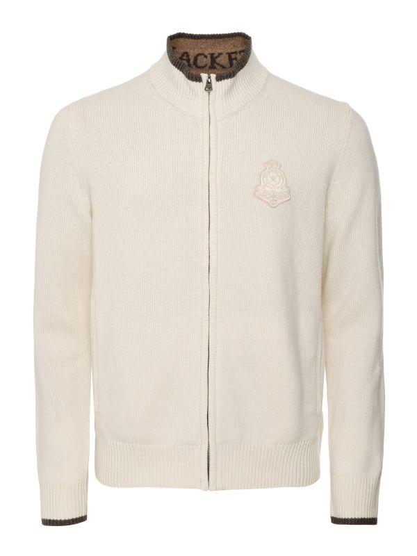 The Hackett zip cardigan is packed with refined sports-luxe style. Lovingly crafted in responsibly sourced merino wool, the cardigan ensures softness and essential warmth. Featuring a cosy funnel neck with half-zip closure and tipped rib trims, whilst the branded inner collar and heritage chest badge add iocnic finishes.