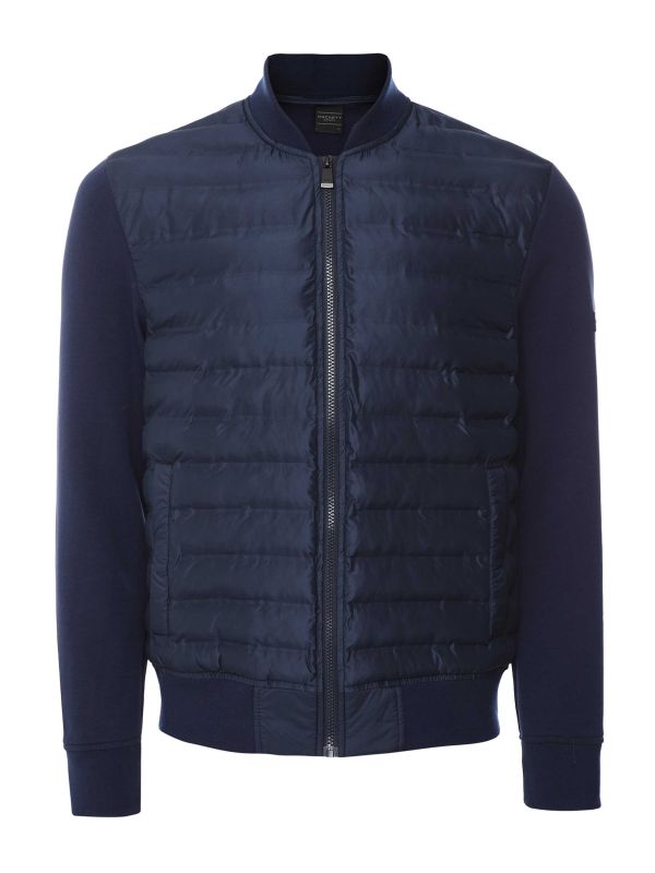 The Hackett quilted bomber jacket seamlessly blends modern design with classic appeal. Featuring a quilted body, it offers both warmth and a stylish, structured look, perfect for transitional weather. The jersey sleeves provide added comfort and flexibility, making it a practical yet refined choice for everyday wear.
