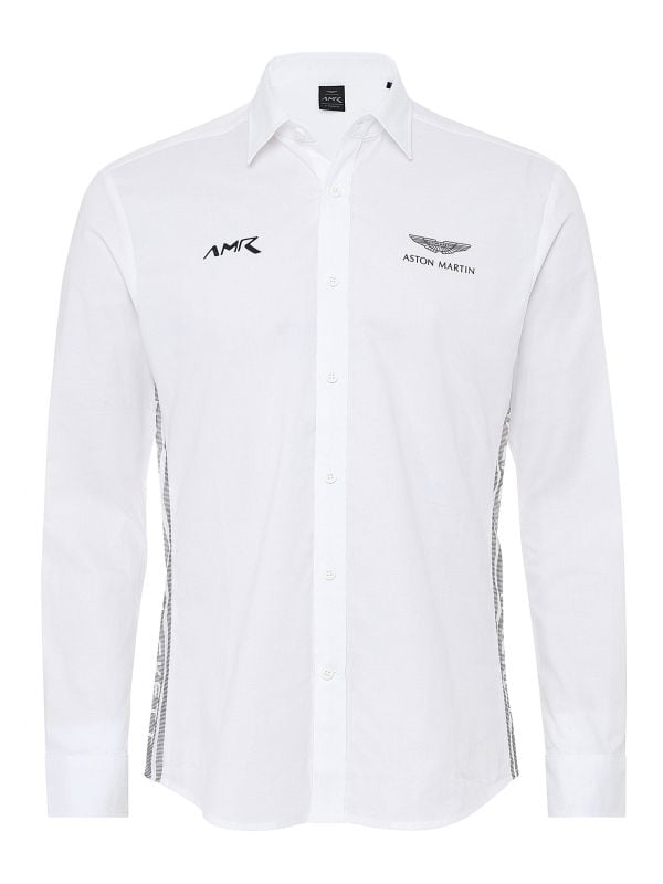 Taken from the label's Aston Martin Racing collection, the Hackett Sonic Dot shirt showcases dynamic sporty detail. Crafted in pure cotton poplin and cut to a slim fit, the shirt promises a contoured silhouette and super crisp appearance. Featuring a pointed collar, branded chest and adjustable cuffs, whilst the pixel branding to the side seams adds a modern point of interest.