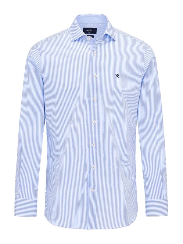 Add classic pattern to your attire with the Hackett Bengal stripe shirt. Crafted in pure cotton poplin, the shirt has been tailored in a slim fit that will naturally contour a masculine silhouette. Featuring a cutaway collar and adjustable cuffs, the Hackett shirt is complete with the label's logo proudly embroidered to the chest.