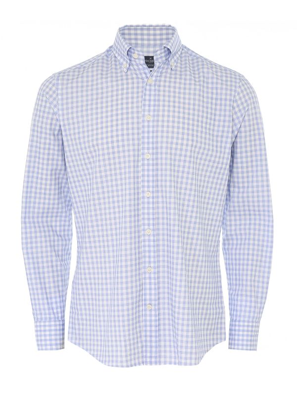 Introduce timeless pattern into your shirting options with the Hackett gingham shirt. Cut to a slim fit and crafted in premium woven cotton, the long sleeve shirt promises day-long comfort and a modern silhouette. Featuring a smart button down collar and adjustable buttoned cuffs, whilst the sky blue gingham check exudes heritage-inspired charm.