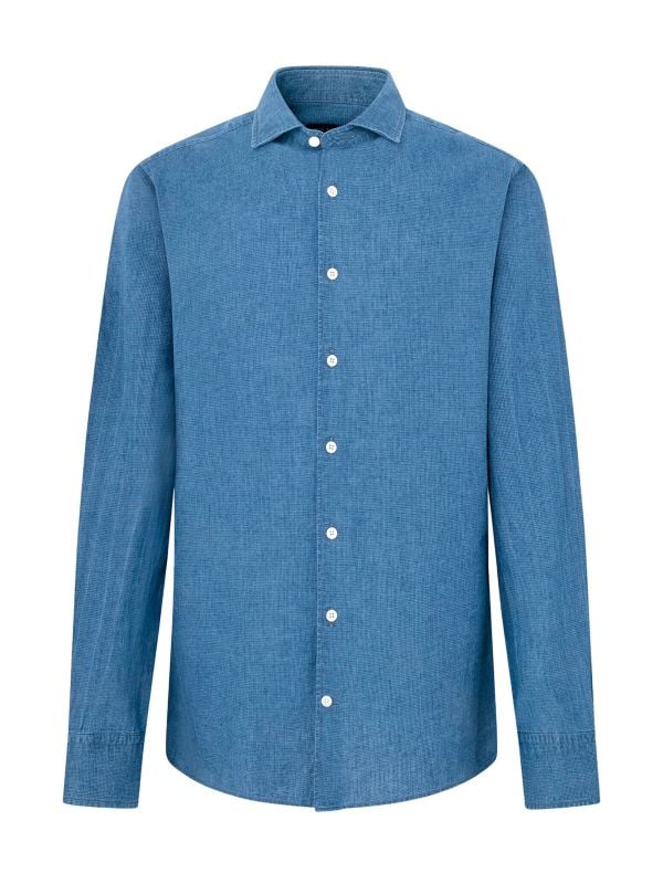The cutaway collar exudes contemporary refinement, while the long sleeves with buttoned cuffs offer versatility for any occasion. Designed in a slim fit, this shirt effortlessly accentuates the silhouette, making it a staple piece for the modern gentleman's wardrobe.