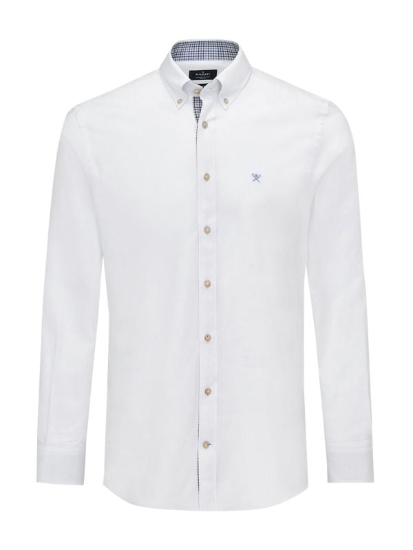 The Hackett flannel shirt is the perfect option for refined weekend dressing. Cut to a slim fit for a contoured silhouette, the shirt has been crafted in melange flannel cotton for a sumptuously soft handle. Featuring a button down collar, adjustable cuffs and embroidered logo to the chest, whilst the gingham trim and faux horn buttons add a charming finish.