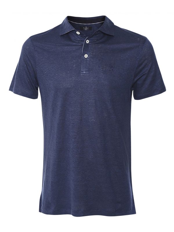Upgrade your summer attire with the Hackett linen trim polo shirt. Cut to a slim fit and crafted in premium cotton jersey, the polo offers an athletic silhouette and essential comfort. Featuring a soft pointed collar, three button placket and side vents, whilst the embroidered logo to the chest adds authentic appeal. The Hackett polo is finished with a striped linen under collar and placket trim offering charming sartorial elegance.