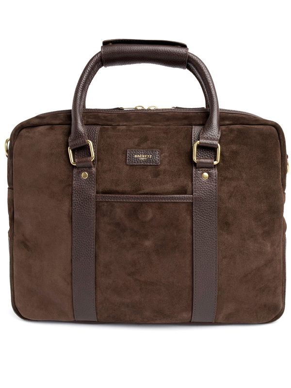 The Hackett Ludgate briefcase is a luxurious option for the professional gent. Crafted in a durable suede, the bag is complete with a generous interior and a multitude of pockets offering superb functionality. Featuring a removable shoulder strap, dual zip closure and top carry handles, whilst the pebbled leather panels create a luxe aesthetic.