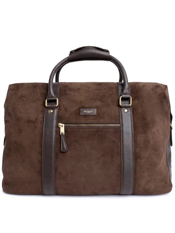 The Hackett Ludgate holdall is the ultimate weekend bag. Lovingly crafted using the finest suede, the bag offers a rich aesthetic and buttersoft handle. Featuring a detachable grosgrain shoulder strap, leather carry handles and zippered closure, whilst the leather reinforcement gives superb durability. The Hackett bag showcases a large capacity so you have plenty of room to pack your essentials.