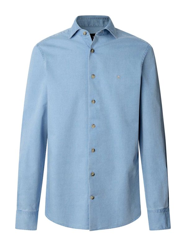 The Hackett denim shirt is a timeless staple with a refined twist, crafted from soft cotton in a light wash for that effortlessly worn-in look. It features a smart cutaway collar and clean French placket, paired with long sleeves and adjustable buttoned cuffs for a tailored, polished feel.