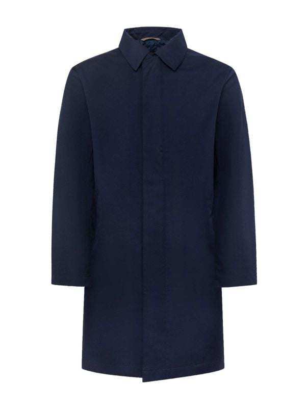 The Hackett Sloane Mac is a sleek and functional piece designed for the modern man. Crafted with a water-resistant exterior, it ensures you're prepared for unexpected weather without compromising style. The suede under-collar adds a subtle touch of luxury, while the zip and snap button closure provide a secure fit.