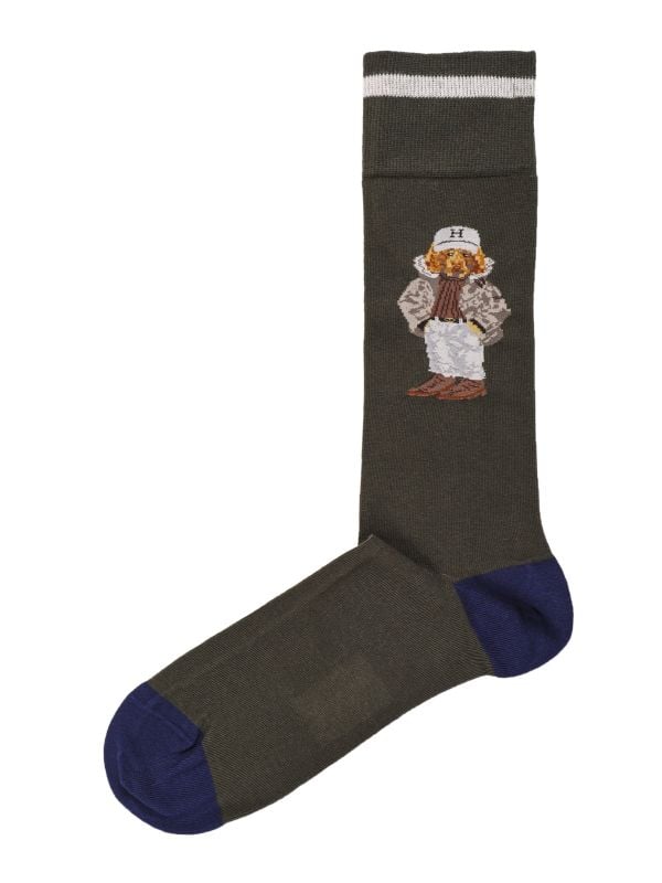 The Hackett Winter Harry socks are part of the label's seasonal 'Harry' range. Crafted in a mercerised cotton rich knit with stretch and hand-linked toe seams, the socks will ensure longevity and day-long comfort. Featuring ribbed ankle cuffs and contrast heel and toe panels, whilst the playful 'Harry' dog is an ode to Jeremy Hackett's Sussex spaniel.