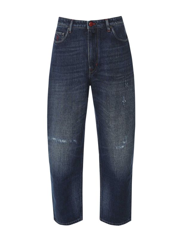 The HandPicked Chiusa Jeans are crafted from cotton denim and finished with a worn, distressed aesthetic. They feature a five-pocket design, belt loops and a top button fastening, with subtle whiskering and contrast topstitching for added texture. A leather rear patch with a metal logo plaque provides signature branding, while reinforced pocket edges and sturdy hardware ensure lasting wear. Cut in a clean silhouette, these jeans work well with casual layers and everyday footwear.