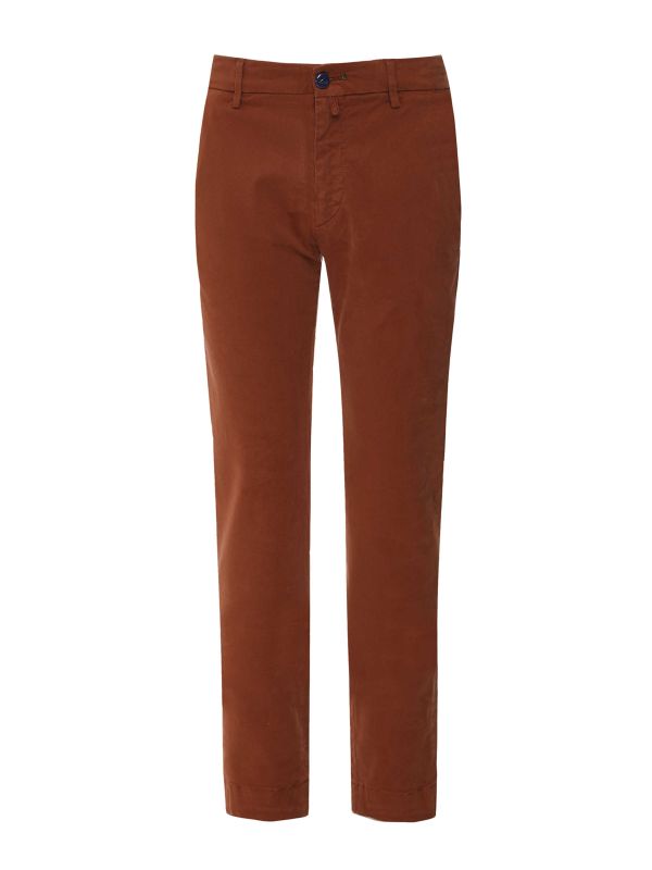 The HandPicked Mantova Slim Pants present a smart slim-leg silhouette finished with considered detailing. Tailored with belt loops, a button-fastening waist and a neatly finished fly, they feature buttoned rear welt pockets and a tonal embroidered monogram at the back. The flat-front cut and clean seams make them suitable for smart-casual outfits, pairing well with shirts or knitwear.