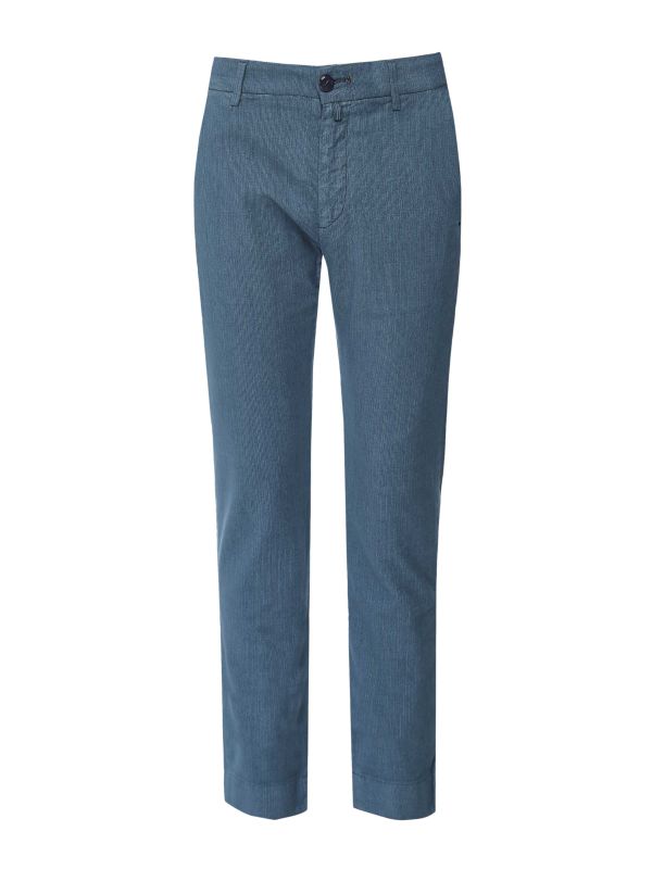 The HandPicked Mantova Tailored Jeans present a smart, pared-back Pant styled in a comfortable stretch-cotton fabrication. They feature belt loops, a Zipper fly with top button, side pockets and a single welt back pocket with button and tonal embroidered logo. A turned-up cuff and a subtle texture give a polished finish suitable for both casual and smarter looks. Cut to a regular fit with a straight leg, they combine practical detailing with an easy silhouette for everyday wear.