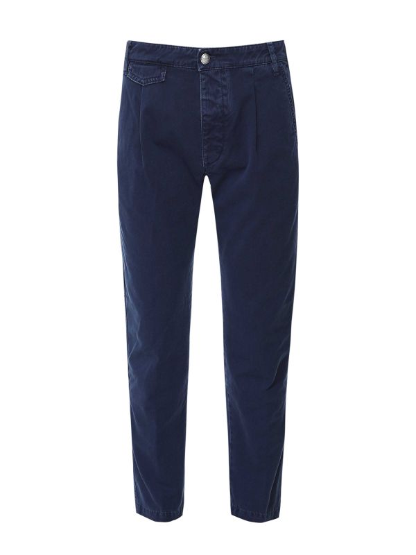 The HandPicked Mezzano Tapered Jeans present a contemporary take on classic Pant styling. Featuring a pleated front and a tapered silhouette, they bring structure while allowing comfortable movement. Practical details include belt loops, a button fastening at the waist and rear double-welt pockets with a button closure, plus a leather waistband patch. Cut for a neat profile, these jeans suit smart-casual outfits or relaxed weekend wear. Finished with understated hardware and clean lines for easy pairing with shirts or knitwear.
