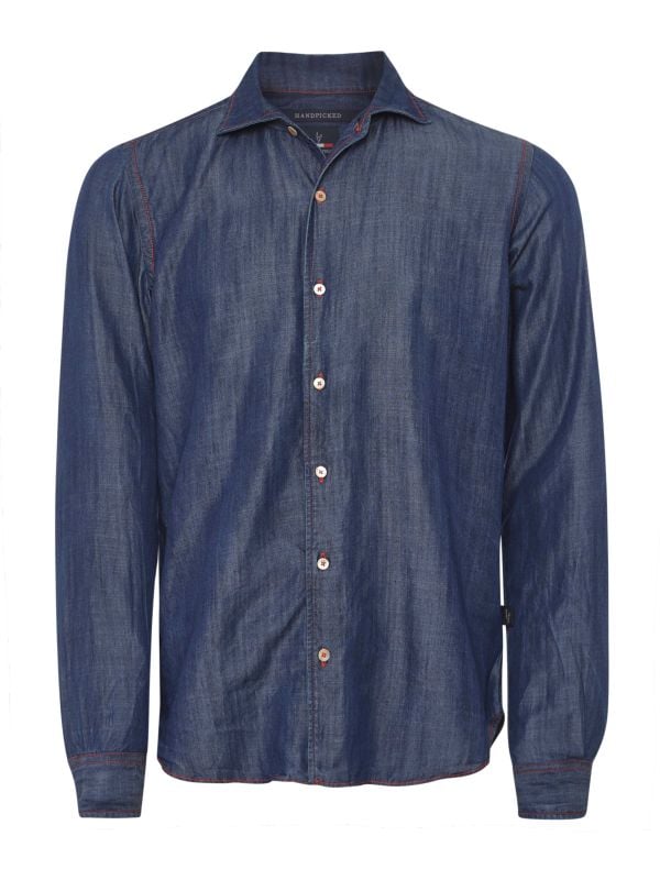 The HandPicked Offida shirt is a fresh update on a classic, crafted in Italy from soft and breathable lyocell. Designed in a regular fit, it features a button fastening, long sleeves, and neat button cuffs for a clean finish. Contrast red stitching adds a subtle pop of detail, while the curved hem gives it a relaxed edge that works well worn tucked or untucked. A versatile piece, it’s perfect for effortless smart-casual styling.
