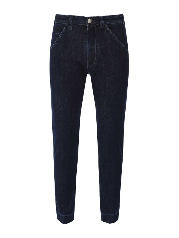 The HandPicked Pico Tapered Jeans are a contemporary take on everyday denim. They sit comfortably at the waist with a tapered leg, angled front pockets and a patch cargo pocket on the thigh for extra utility. Finished with belt loops, a Zipper fly and button fastening and a small embroidered logo on the rear pocket, they combine considered detailing with easy movement. Made in Italy, they balance practical features with polished casual dressing and comfort.
