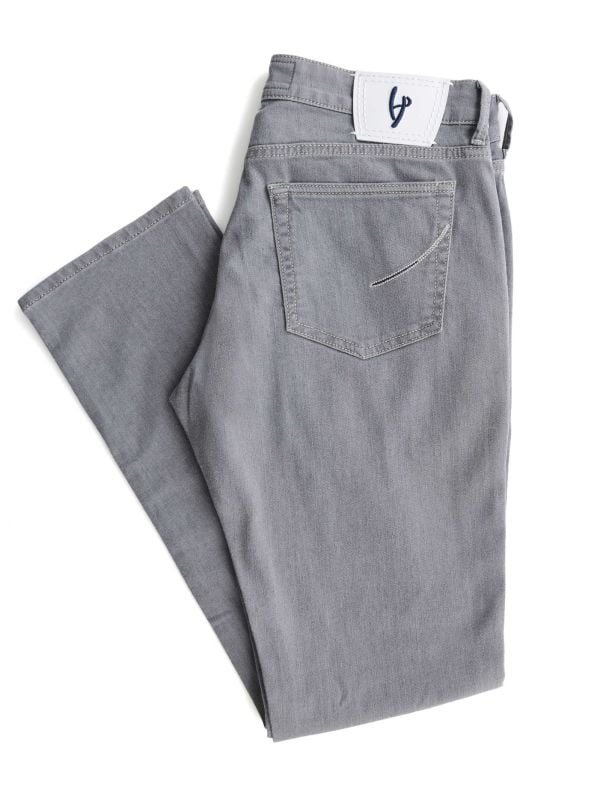 The HandPicked Parma jeans are a stylish everyday essential, crafted from a soft cotton stretch blend for comfort and flexibility. Made in a light grey denim, they feature a classic five-pocket design and branded metal hardware for a premium finish. A branded waistband tab adds a subtle signature touch, while the regular fit ensures easy movement and a relaxed silhouette. Made in Italy, these jeans combine modern style with effortless, casual wearability.