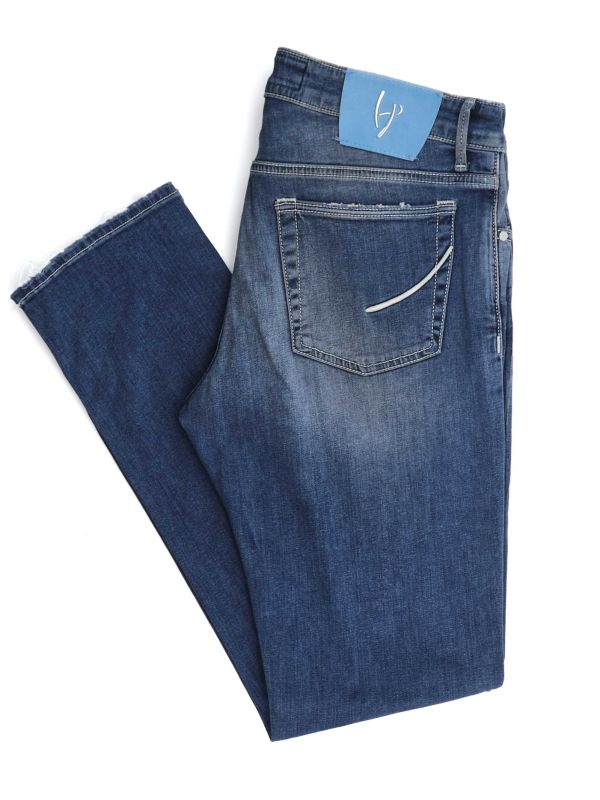 The HandPicked Ravello jeans are a versatile everyday essential, expertly crafted in Italy from a soft cotton stretch blend for comfort and flexibility. Made in washed denim, they offer a relaxed, lived-in look that pairs effortlessly with both casual and smart-casual outfits. Featuring a classic five-pocket design, branded metal hardware, and a signature waistband tab, these regular-fit jeans provide timeless style with a modern, laid-back edge.