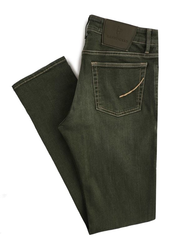 Refresh your denim collection with the HandPicked Ravello jeans, crafted from soft cotton stretch for comfort that moves with you. The washed green denim adds a modern, eye-catching twist, while the classic five-pocket design, functional belt loops, and branded waistband tab deliver effortless style and practicality. Made in Italy with a regular fit, these jeans are a favourite among fashion insiders for their perfect balance of comfort and sophistication. Don’t miss out—secure your pair today and step into standout style, premium quality, and everyday confidence.
