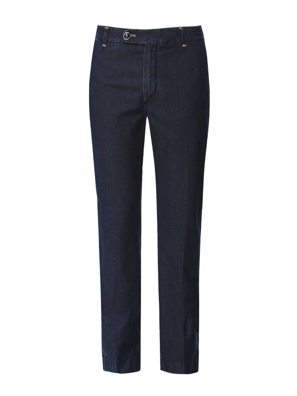 The HandPicked Roma LX Jeans combine understated tailoring with practical detailing. They feature a button waist, belt loops with tonal bartack stitching and a single-welt rear pocket subtly embroidered with the brand mark. Cut with a straight silhouette and finished hems, they have a lined interior for added comfort. Crafted in a cotton blend, these jeans offer a smooth drape with a touch of stretch, making them a versatile option for both smart and casual outfits.