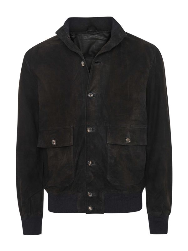 The HandPicked Campli bomber jacket is a refined take on a classic staple. Crafted from premium leather with a soft suede finish, it brings a touch of luxury to casual dressing. The design features a button fastening and elastic ribbed collar, cuffs, and hem for a secure, comfortable fit. With long sleeves and practical front flap pockets, this regular-fit bomber is the perfect mix of timeless style and modern versatility.