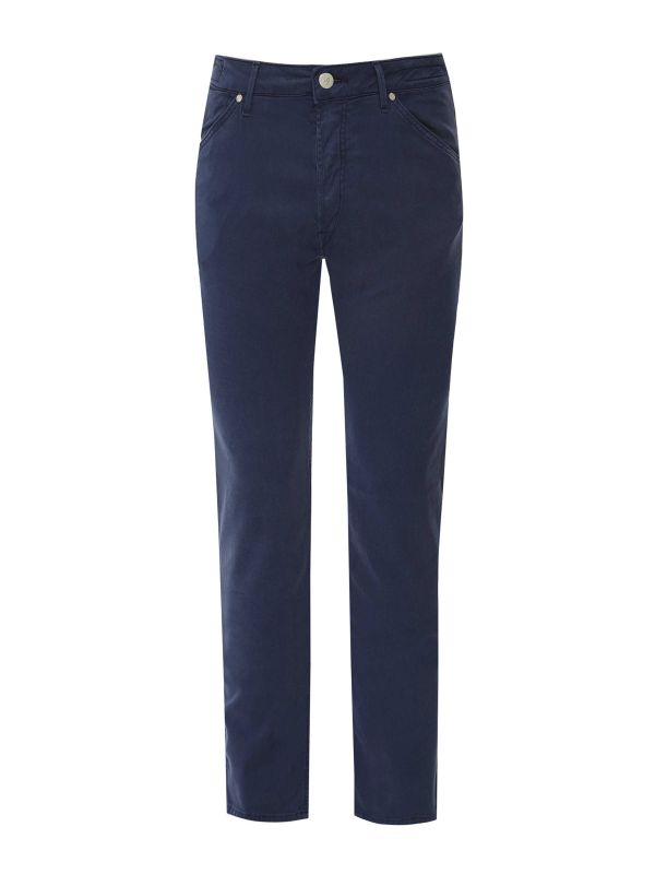 The HandPicked Treia Stretch Jeans are tailored Pants crafted in a cotton-lyocell blend with a touch of elastane for ease of movement. These jeans present a clean five-pocket silhouette with belt loops and a metal button fastening, finished with a leather waistband patch. Designed and made in Italy, they balance everyday functionality with considered detailing for polished casual wear.