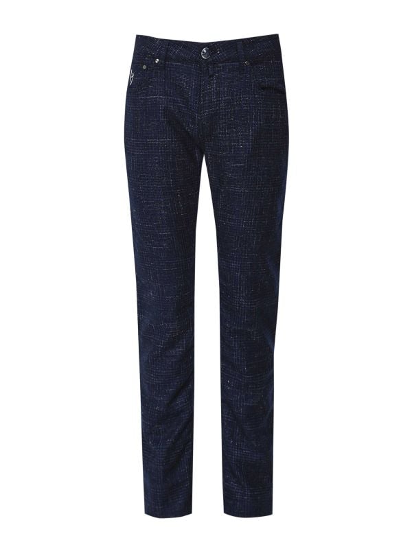 The HandPicked Ravello jeans are crafted from a premium wool and linen blend, giving them a breathable feel with a touch of texture. Designed with a subtle flecked pattern, they bring a refined edge to your casual wardrobe. Classic details like the five-pocket layout, belt loops, and a branded waistband tab keep the look timeless. Made in Italy and cut to a regular fit, they’re an effortless choice for everyday smart-casual style.