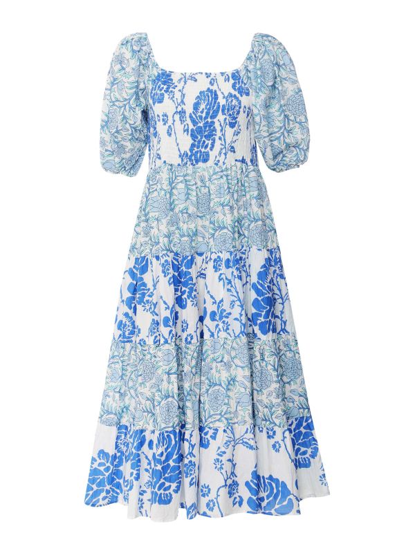 The Dream Waterfront dress is a classy addition to your spring/summer wardrobe. Crafted from 100% cotton, showcasing a gorgeous contrast print on the tiered skirt, this piece is a must-have for a European holiday. The fitted shirred bodice and puff sleeves add a touch of sweetness to the outfit, which can be styled off-the-shoulder or with a round neckline.