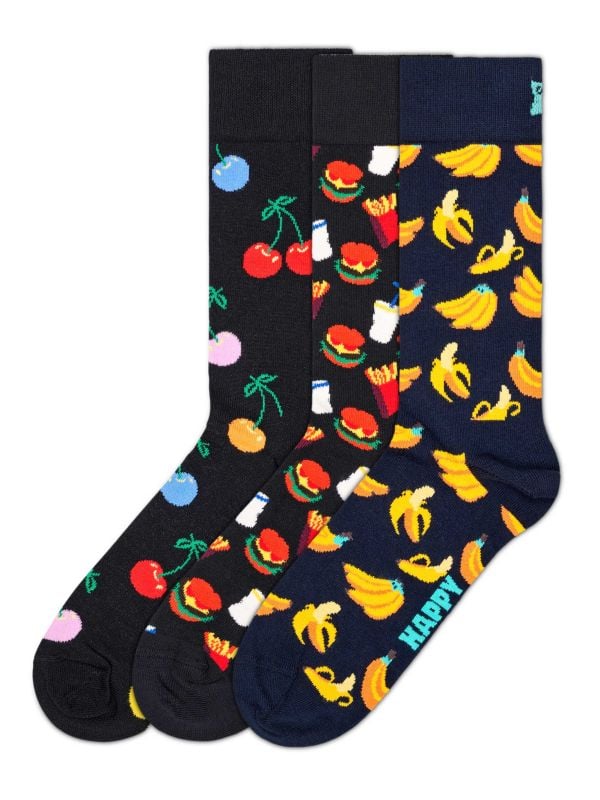 Bring some fun to your sock drawer with the Happy Socks Classic Food Socks 3 Pack. Made from a soft cotton blend with stretch, these socks deliver comfort and a snug fit all day long. This three-pack features playful designs including Cherries, Bananas, and Fast Food, all with reinforced heels and toes for durability. Presented in a branded gift box, they’re perfect for treating yourself or gifting a friend with a quirky, stylish twist.