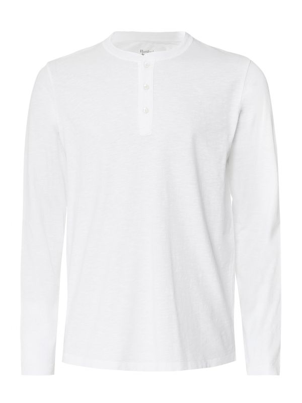Introduce relaxed style to your casual attire with the Hartford long sleeve Henley t-shirt. Lovingly crafted in slub cotton jersey, the long sleeve tee offers a lightweight handle and essential breathability. Featuring a ribbed collar and three button Henley placket, whilst the mother-of-pearl buttons provide a touch of luxury.