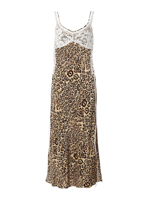 The Hayley Menzies Arizona dress is the perfect day-to-night piece and promises to add a dose of statement style to your wardrobe. This limited-edition dress features shoulder straps with corset-inspired gold eyelets, vintage style lace and lengths of ribbon for a lingerie like appearance. The Hayley Menzies dress is complete with feisty leopard print swirls and an elegant midi length silhouette.
