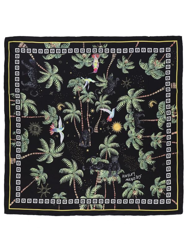 The Hayley Menzies square scarf is perfect for filling your outfit with luxury. Beautifully crafted from pure silk, the scarf has a super silky touch and is made to order to reduce waste. Boasting the brand's seasonal Beija-Flor print, the scarf is complete with hummingbirds, palm trees and Hayley Menzies branded text to the front.