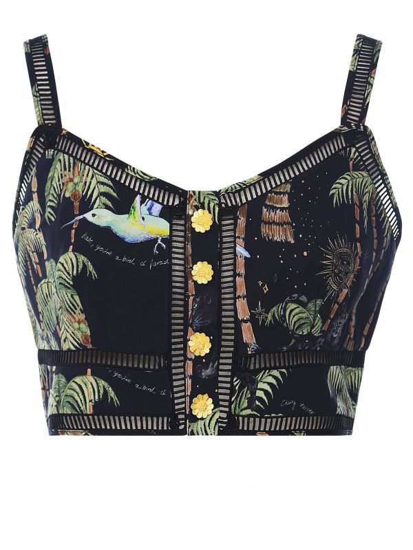 The Hayley Menzies crop top is the perfect piece to style with the matching pleated skirt for the ultimate SS22 outfit. Expertly crafted from pure cotton, the top has a beautiful floral button fastening. With cutout details to the straps and throughout, the top is complete with a tropical print all over.