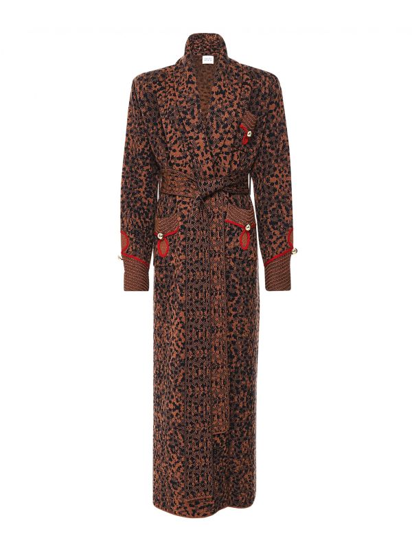Combine vintage and glamour this season with the Hayley Menzies Jacquard smoking robe. Beautifully crafted from pure merino wool, the cardigan boasts powerful padded shoulders, contrasting red stitching and is finished and an oversized self tie belt. Make a bold statement this season with this striking Hayley Menzies piece.
