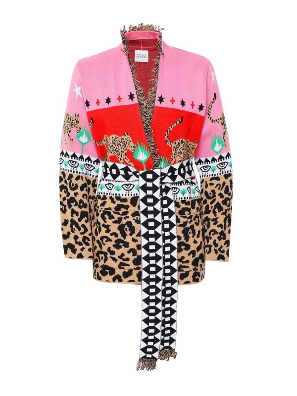 Make a statement with the Hayley Menzies Leopardess cardigan. Crafted with expertise from pure cotton, this premium cardigan offers two patch pockets to the front and a detachable knitted belt, promising maximum functionality. Complete with a tassel detail and a striking design all over, this cardigan can be worn for any smart or casual occasion.