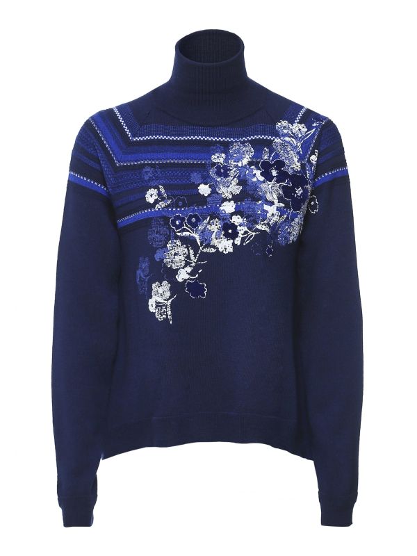 Get a stylish everyday look with the High Fleuret sweater. This chic turtleneck knit is crafted from wool and is a versatile staple piece to take you through autumn and winter. It features raised, variegated stripes across the front and shoulders, with a floral printed motif, raglan sleeves and rib knit trims to complete the look.