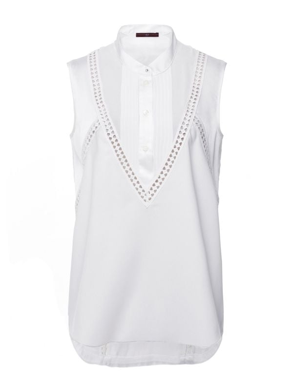 Add a touch of sophistication to your outfit with the High Quiver blouse. Crafted from premium fabrics, the sleeveless blouse has been crafted from slightly sheer fabric. With a button fastening to the front, the blouse has a round neck, and a jewel and gathered details to the back.