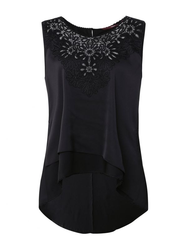 The High Radiate top is a super sleek number to dress up or down for an effortlessly elegant look. Crafted in technical satin with a high round neckline and crochet lace front panel, this stylish top is perfect for all occasions. This sleeveless top features a keyhole detail to the back, asymmetric front hem and draped back hem.