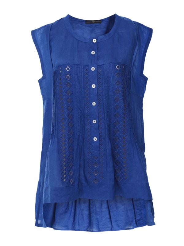 The High Secret embroidered blouse is the perfect addition to your casual wardrobe with its feminine appeal and lightweight fabric. Featuring a round neck, button placket, embroidered panels, pin-tuck details and a dropped hem, this elegant blouse boasts a contemporary design. Style yours with pants and sandals for a laid-back daytime look.